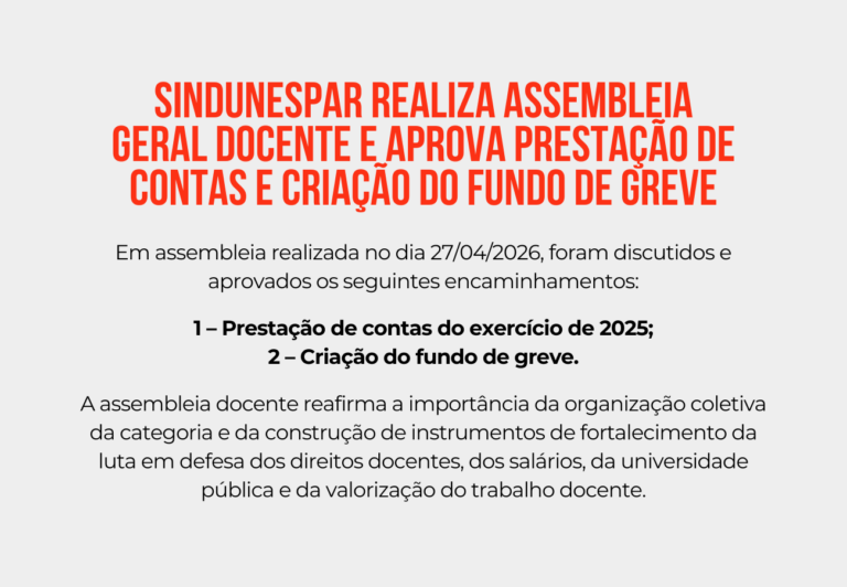 A Sindunespar, como representante dos docentes da Universidade Estadual do Paraná (Unespar), é a voz unificada que defende os interesses e direitos da comunidade acadêmica nos diversos campi. Afiliado ao ANDES-SN, comprometemo-nos fervorosamente com a valorização profissional e a garantia da qualidade do ensino superior público. Junte-se a causa e fortaleça a luta!